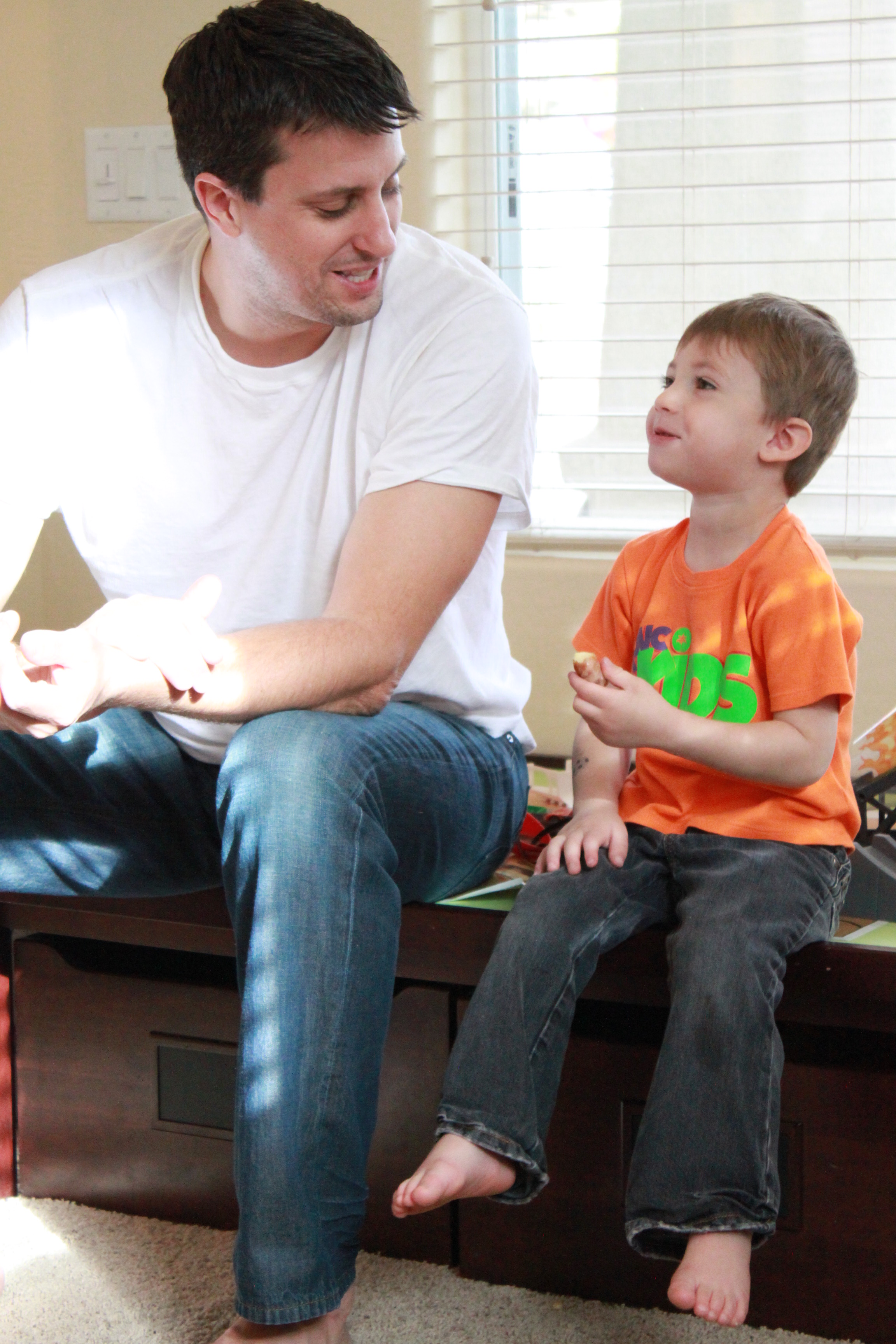 Anyway, what I have noticed is that when they are together there are usually no naps, there is a LOT of sugar, there are sporadic meals (mostly fast food – he actually TAKES HIM into the PLAYGROUNDS at McDonalds – ick!), there are tantrums, there is NON-STOP action. It’s like watching a hummingbird flit from flower to flower becoming more and more energized by each sugary sip! Whew. Exhausting! The more tired they get, the more delirious they get and the more energized they get! It’s completely the opposite of how I function.