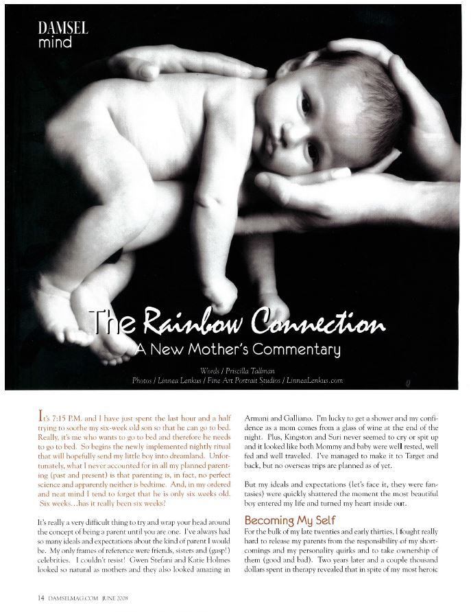 This article ran in Damsel Magazine in June of 2008, just six months after my son was born. As a new mommy, I had the surprise of my life. Really, nothing prepares you for a child and yet, along the way you hit your stride and things are just as they should be. This piece will always be important to me.
